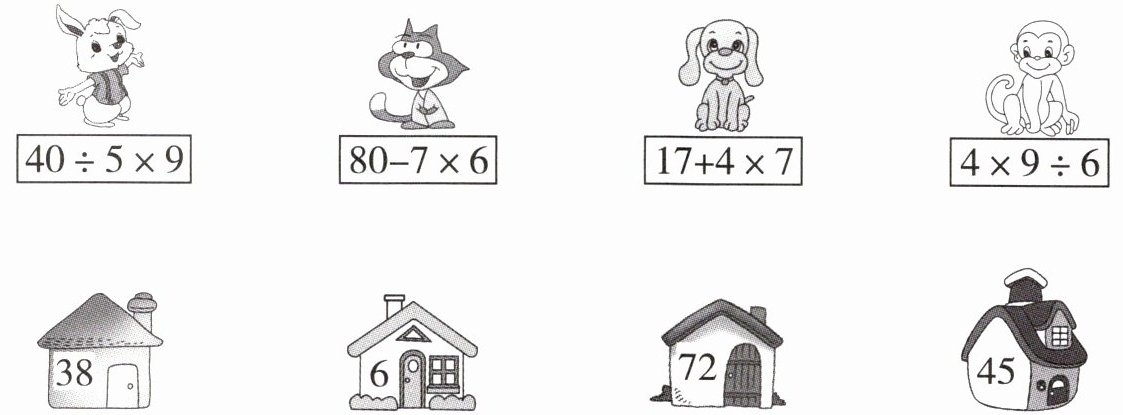 $\underline{8×7}$+40 $50-\underline{4×9}$ $36+\underline{42÷6}$ $64-\underline{16÷2}$