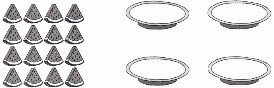 16块西瓜,平均放到4个盘子里,每个盘子里放(