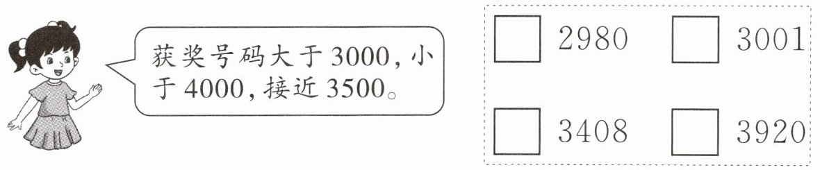 二、马戏表演前进行抽奖活动,想一想,哪个数是获奖号码?在数字前的□内画“√”。
