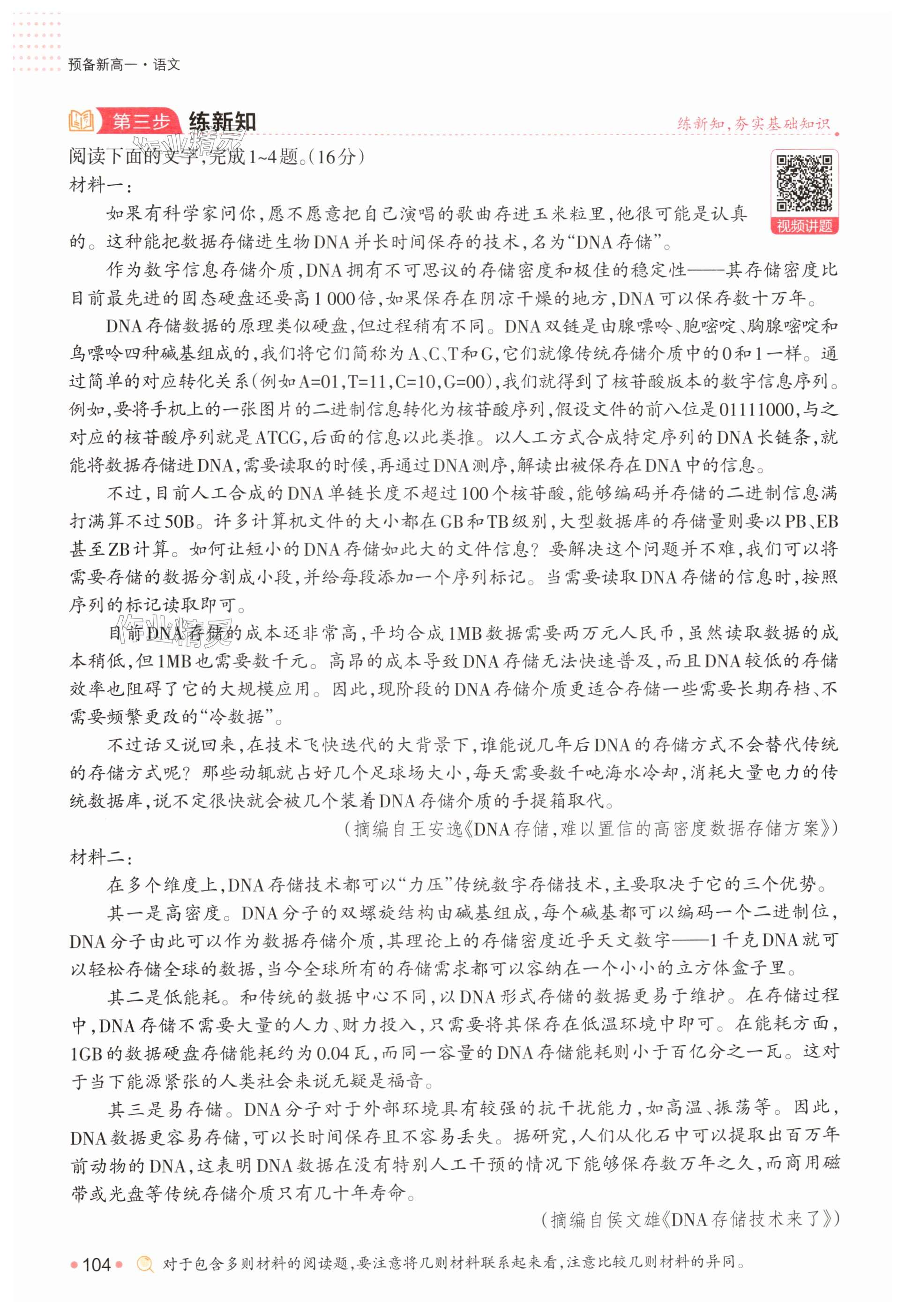 注:目前有些书本章节名称可能整理的还不是很完善,但都是按照顺序排列的,请同学们按照顺序仔细查找。练习册 2025年一本预备新高一语文 答案主要是用来给同学们做完题方便对答案用的,请勿直接抄袭。
