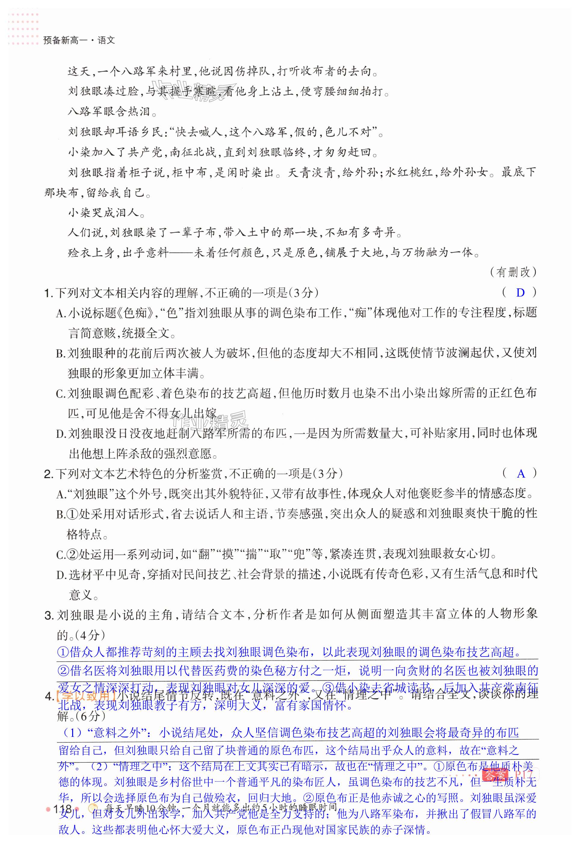 注:目前有些书本章节名称可能整理的还不是很完善,但都是按照顺序排列的,请同学们按照顺序仔细查找。练习册 2025年一本预备新高一语文 答案主要是用来给同学们做完题方便对答案用的,请勿直接抄袭。
