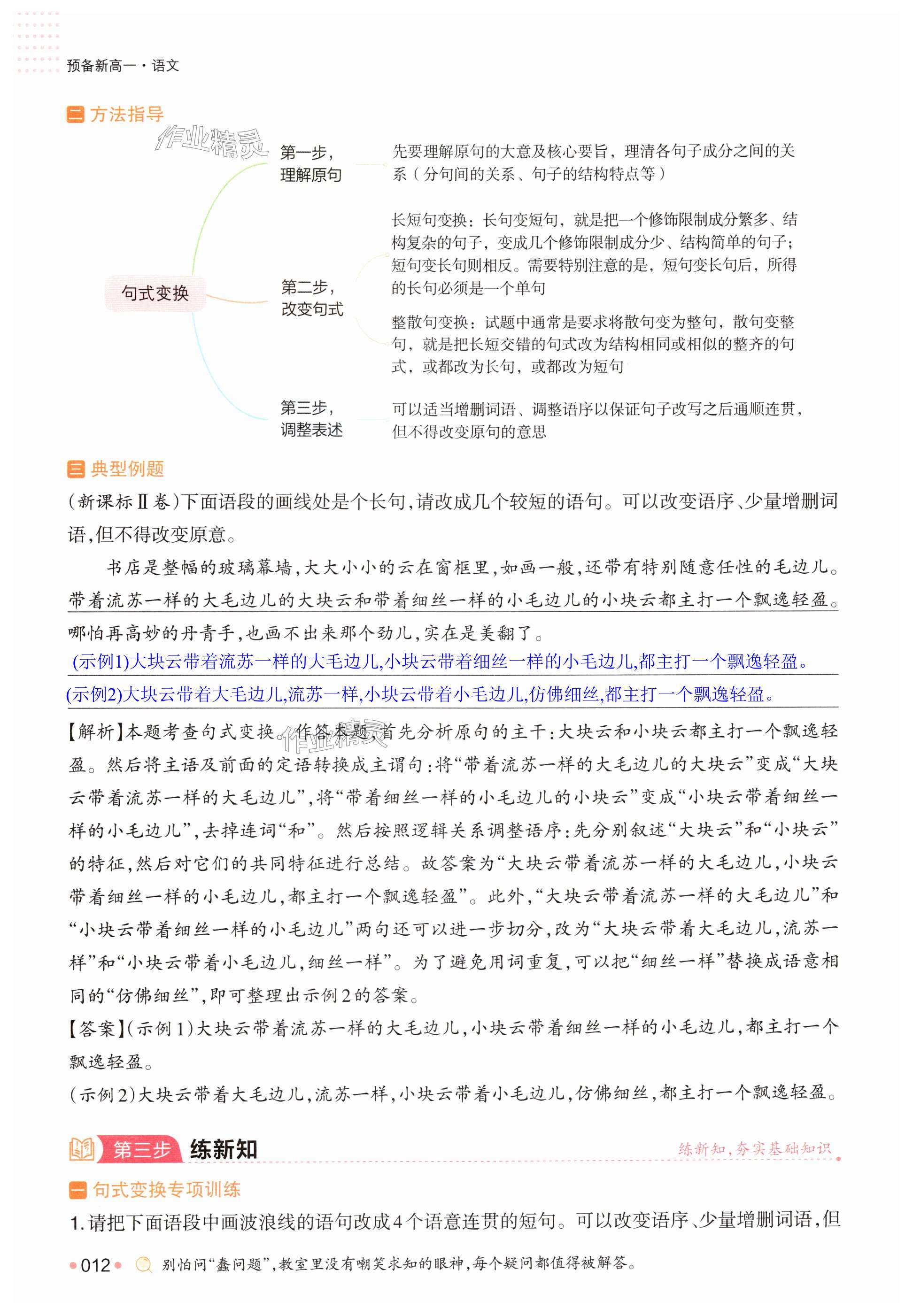 注:目前有些书本章节名称可能整理的还不是很完善,但都是按照顺序排列的,请同学们按照顺序仔细查找。练习册 2025年一本预备新高一语文 答案主要是用来给同学们做完题方便对答案用的,请勿直接抄袭。