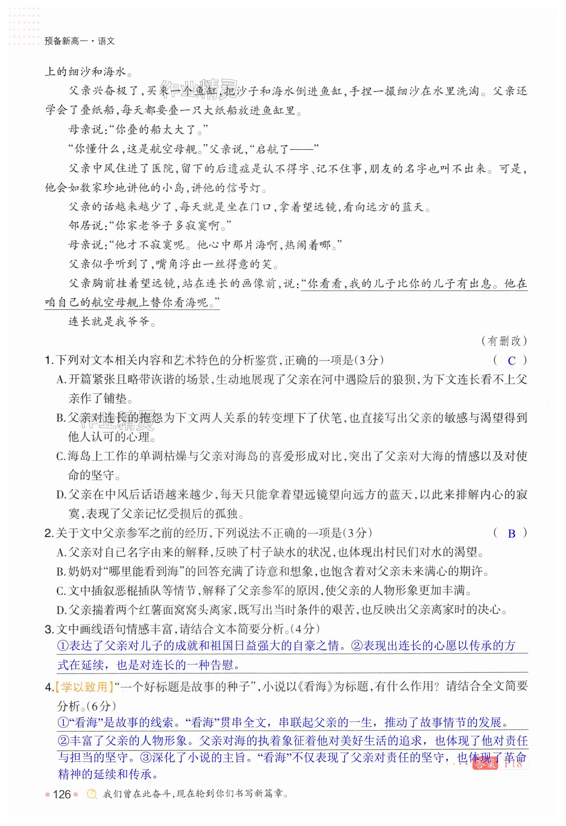 注:目前有些书本章节名称可能整理的还不是很完善,但都是按照顺序排列的,请同学们按照顺序仔细查找。练习册 2025年一本预备新高一语文 答案主要是用来给同学们做完题方便对答案用的,请勿直接抄袭。