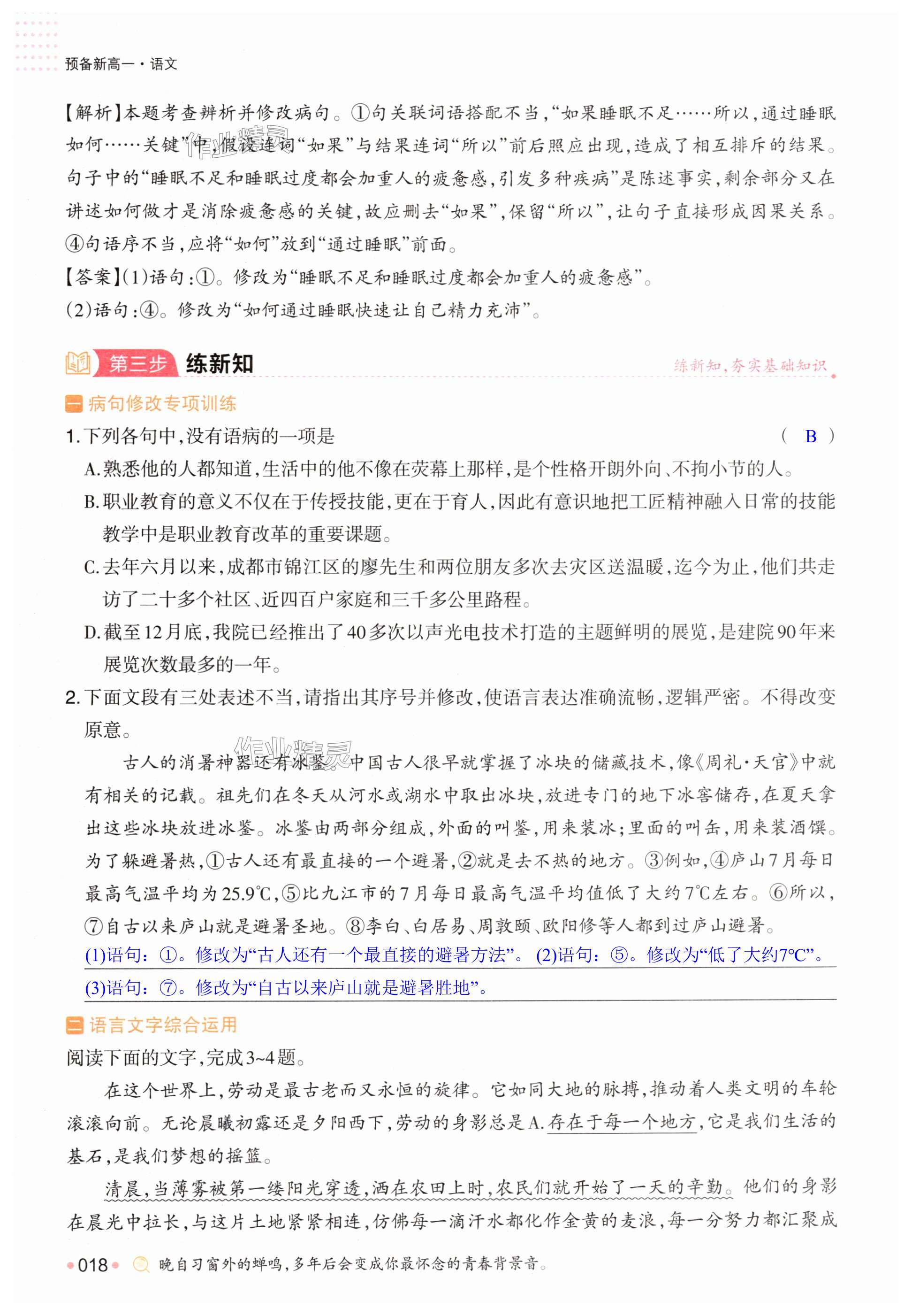 注:目前有些书本章节名称可能整理的还不是很完善,但都是按照顺序排列的,请同学们按照顺序仔细查找。练习册 2025年一本预备新高一语文 答案主要是用来给同学们做完题方便对答案用的,请勿直接抄袭。