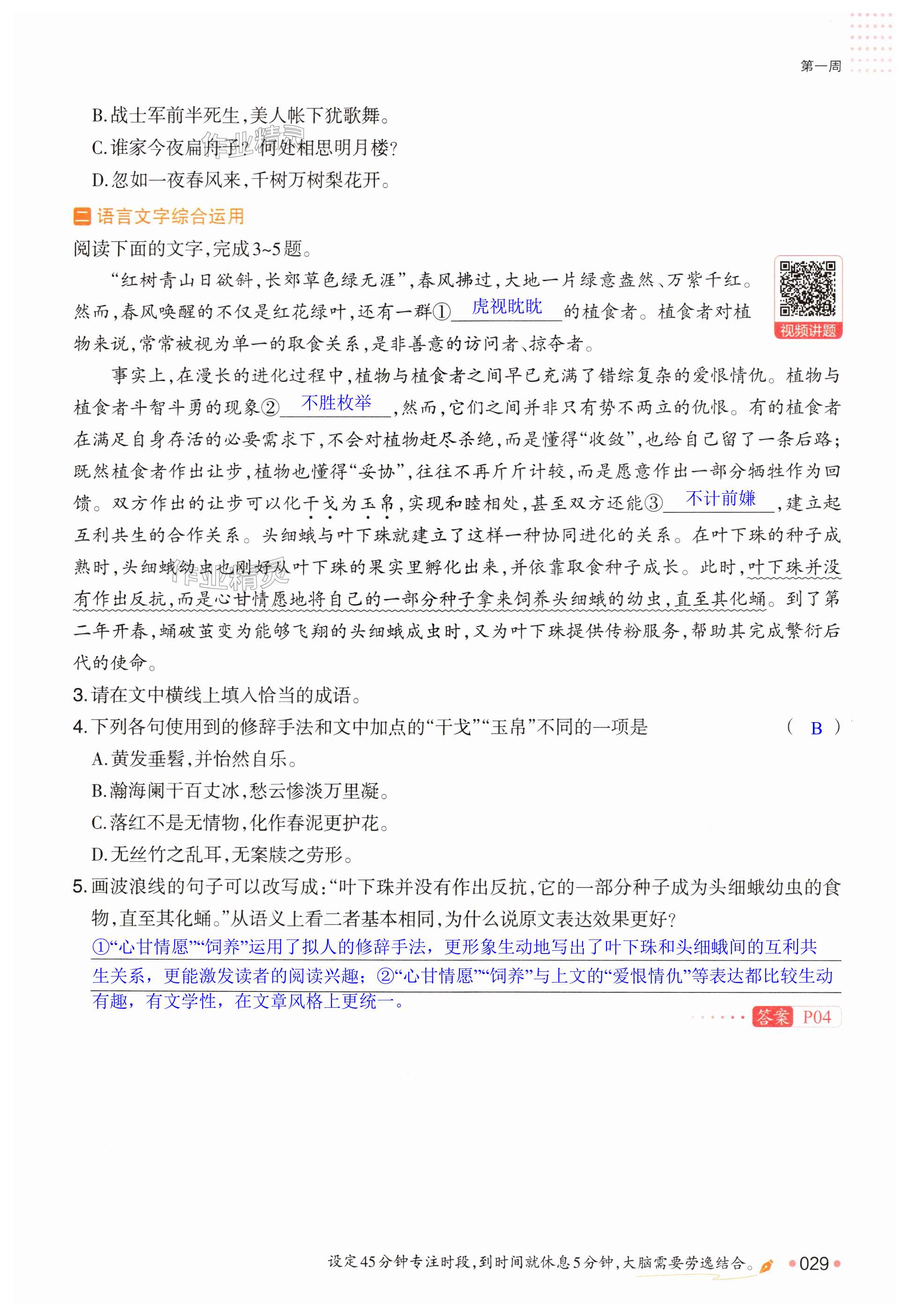 注:目前有些书本章节名称可能整理的还不是很完善,但都是按照顺序排列的,请同学们按照顺序仔细查找。练习册 2025年一本预备新高一语文 答案主要是用来给同学们做完题方便对答案用的,请勿直接抄袭。