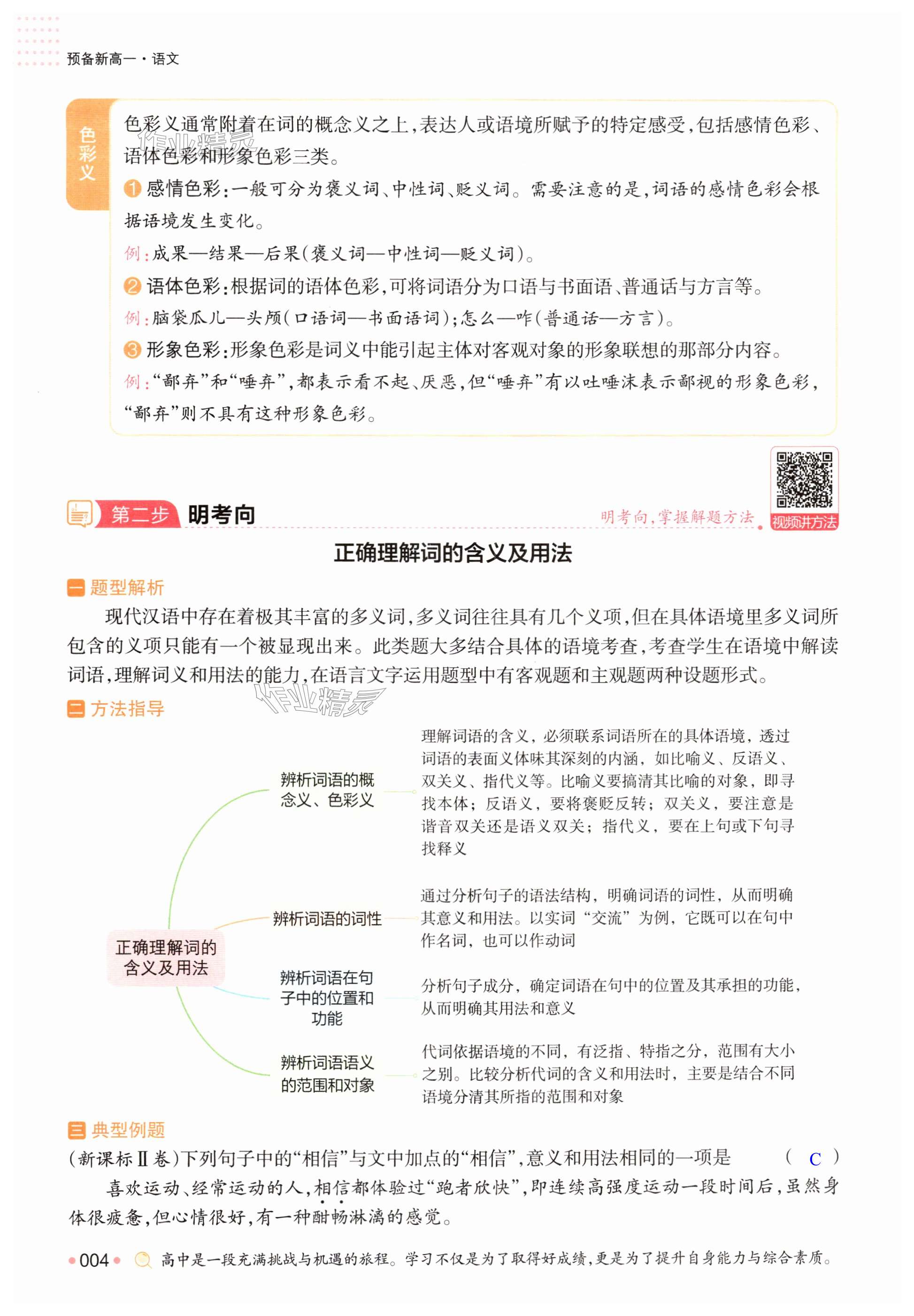 注:目前有些书本章节名称可能整理的还不是很完善,但都是按照顺序排列的,请同学们按照顺序仔细查找。练习册 2025年一本预备新高一语文 答案主要是用来给同学们做完题方便对答案用的,请勿直接抄袭。