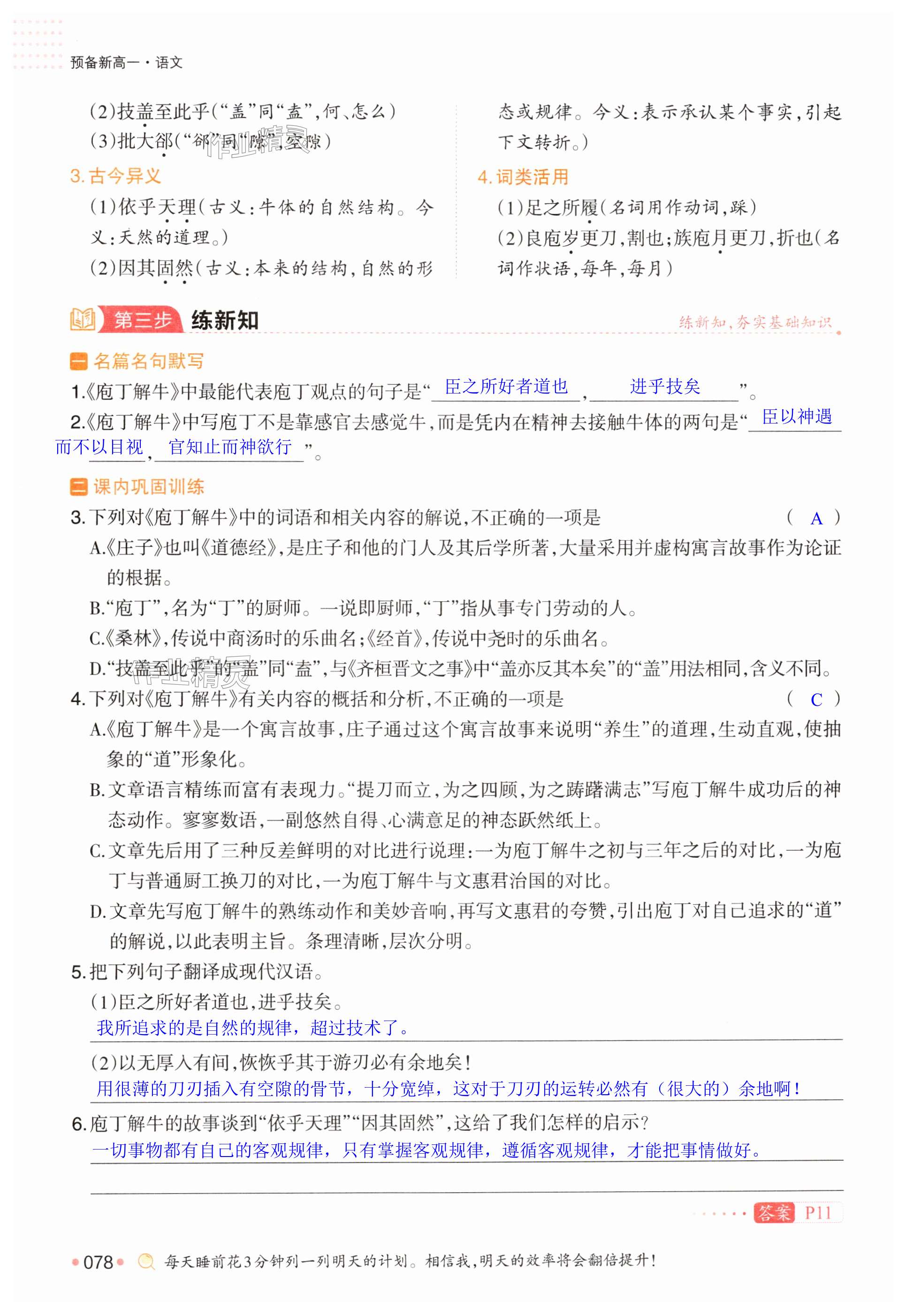 注:目前有些书本章节名称可能整理的还不是很完善,但都是按照顺序排列的,请同学们按照顺序仔细查找。练习册 2025年一本预备新高一语文 答案主要是用来给同学们做完题方便对答案用的,请勿直接抄袭。
