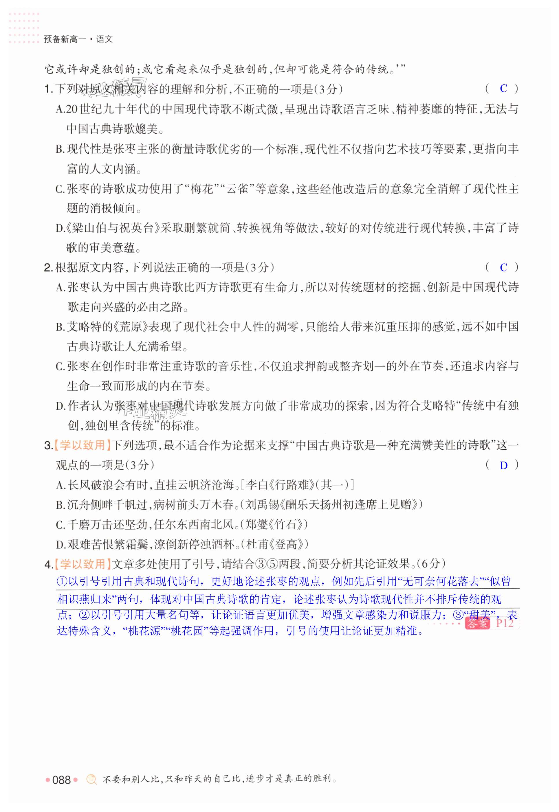 注:目前有些书本章节名称可能整理的还不是很完善,但都是按照顺序排列的,请同学们按照顺序仔细查找。练习册 2025年一本预备新高一语文 答案主要是用来给同学们做完题方便对答案用的,请勿直接抄袭。