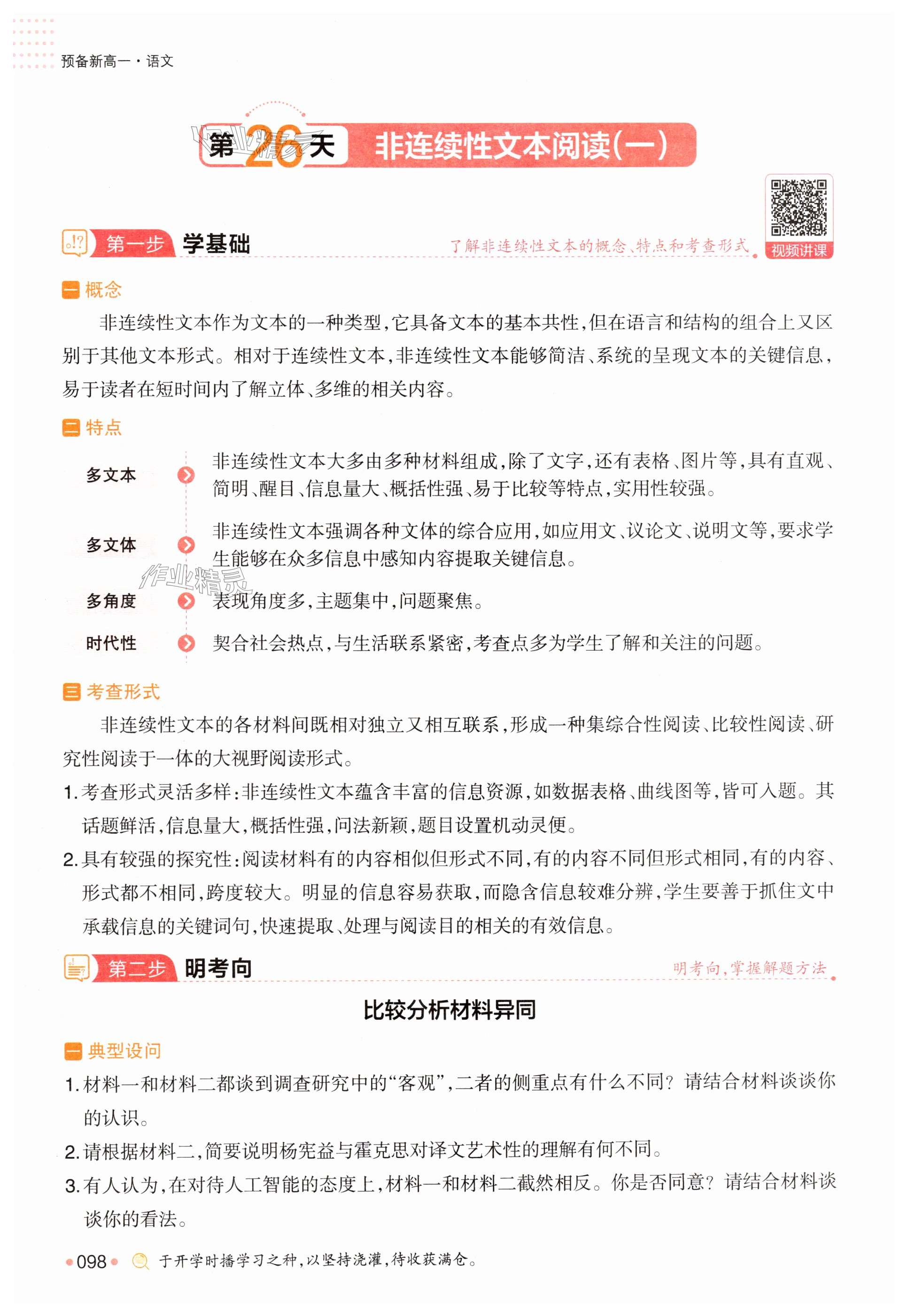 注:目前有些书本章节名称可能整理的还不是很完善,但都是按照顺序排列的,请同学们按照顺序仔细查找。练习册 2025年一本预备新高一语文 答案主要是用来给同学们做完题方便对答案用的,请勿直接抄袭。