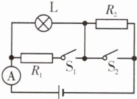 1. (新编)在如图所示的电路中,灯泡的电阻$R_L = 12 \Omega$不变,正常发光时其两端的电压为$12 V$,$R_2 = 12 \Omega$。当开关$S_1$、$S_2$均闭合时,电流表的示数为$1.2 A$,这时灯泡正常发光。