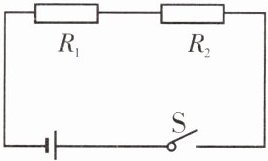 【例1】定值电阻$R _ { 1 } = 20 \Omega $,$R _ { 2 } = 30 \Omega $,接入如图所示的电路中。闭合开关S,则通过$R _ { 1 } $、$R _ { 2 } 的电流之比I _ { 1 } : I _ { 2 } = $____;$R _ { 1 } $、$R _ { 2 } 两端的电压之比U _ { 1 } : U _ { 2 } = $____。
