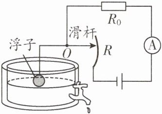解:当油箱中油量减少时,浮子下降,带动滑杆使滑动变阻器R的滑片上移,R接入电路的电阻增大。