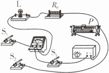 ① 断开开关 $ S_2 $, 闭合开关 $ S_1 $、$ S_3 $, 移动滑动变阻器的滑片 $ P $, 使 ______, 记录数据; 保持滑动变阻器的滑片位置不变, 断开开关 $ S_3 $、闭合开关 $ S_2 $, 记录电压表的示数 $ U $。