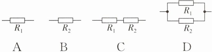 2. (新编)已知$R_{2}\lt R_{1}$,将图中的四种不同接法,接到同一电源两极间,则电路中电流最大的是( )