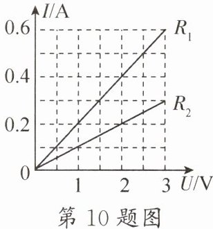 10. (内蒙古中考)如图所示为电阻$R_{1}和R_{2}的I-U$图像,由图像可知( )