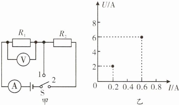 6. (新编)(多选)如图甲所示,当开关$S从点2转到点1$时,电流表和电压表对应的示数如图乙所示。下列说法正确的是( )