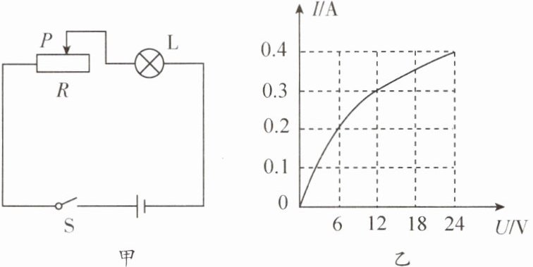 1. 当小灯泡L两端电压为6V时,由图乙可知通过的电流I₁=0.2A,实际功率P₁=U₁I₁=6V×0.2A=1.2W;