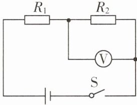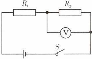 【例2】如图所示,电源两端电压为12V并保持不变,电阻$$ R_{1} $$的阻值为8Ω。当开关S闭合时,电压表的示数为4V。请用$$ P = UI = I^{2}R $$求: