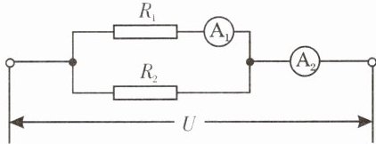 解:由电路图可知,R₁与R₂并联,电流表A₁测R₁支路的电流,电流表A₂测干路电流。