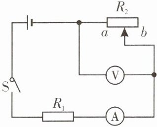【例3】如图所示的电路中,电源电压恒为6V。闭合开关S,滑动变阻器$$ R_{2} $$的滑片滑到a端时,电阻$$ R_{1} $$消耗的电功率为7.2W,则$$ R_{1} = $$ Ω;滑动变阻器滑到b端时,电阻$$ R_{1} $$消耗的电功率为0.8W,此时电流表的示数为 A,滑动变阻器$$ R_{2} $$的电功率为 W。