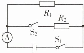 当S₁、S₂都闭合时,R₁与R₂并联,电流表测干路电流。