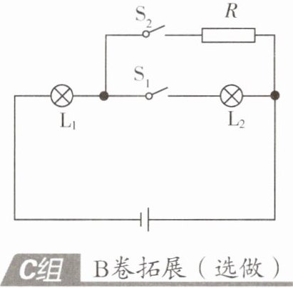 3. 只闭合$ S_{2} $时,$ L_{1} $与$ R $串联: