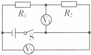 5. (巴中中考)如图所示的电路,电源电压不变,闭合开关$ S $,电压表$ V _ { 1 } $、$ V _ { 2 } 的示数之比为 2 : 3 $。下列说法正确的是 ( )