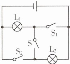 7. (襄阳中考)如图所示,只闭合开关$ S 时灯 L _ { 1 } 的功率为 9 W $;断开开关$ S $,闭合开关$ S _ { 1 } $、$ S _ { 2 } $时,灯$ L _ { 1 } 的功率为 16 W $。电源电压不变,且灯丝电阻不受温度的影响。$ L _ { 1 } $、$ L _ { 2 } $两灯灯丝电阻之比是 ( )