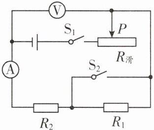 13. (达州中考)如图所示的电路,电源电压为$ 18 V $且保持不变,$ R _ { 1 } $、$ R _ { 2 } $为定值电阻,滑动变阻器的最大阻值为$ 30 \Omega $。当滑片$ P $位于最右端,同时闭合$ S _ { 1 } $、$ S _ { 2 } $时,滑动变阻器的功率$ P _ { 1 } = 7.5 W $,电压表的示数为$ U _ { 1 } $,电流表的示数为$ I _ { 1 } $;滑片$ P $位于最右端,只闭合$ S _ { 1 } $时,滑动变阻器的功率为$ P _ { 2 } $,电压表的示数为$ U _ { 2 } $,电流表的示数为$ I _ { 2 } $;将滑片$ P $移至中点,只闭合$ S _ { 1 } $时,滑动变阻器的功率为$ P _ { 3 } $,电压表的示数为$ U _ { 3 } $,电流表的示数为$ I _ { 3 } $。若$ P _ { 2 } : P _ { 3 } = 8 : 9 $,下列说法正确的是 ( )