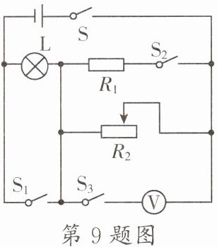 D.当开关S、$S_3$闭合$,S_1、$$S_2$断开时$,R_2$接入电路的最大阻值为15Ω