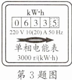 3. (湖北中考)小明家半年前新装了一只电能表,现在表盘的示数如图所示,下列说法正确的是 ( )