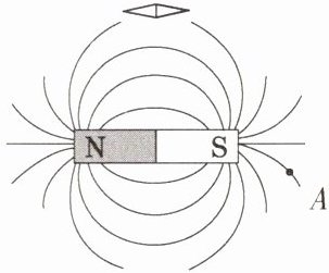 (1) 在磁感线A点处,沿磁感线的切线方向画出箭头,方向向右。