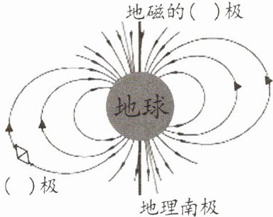 9.(怀化中考)如图为地磁场的示意图,请在括号内填上地磁的磁极和小磁针右下端的磁极(选填“N”或“S”)。