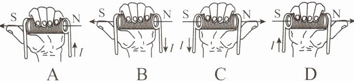 4. (新编)下图中对电流和磁场方向之间关系的判断,正确的是( )