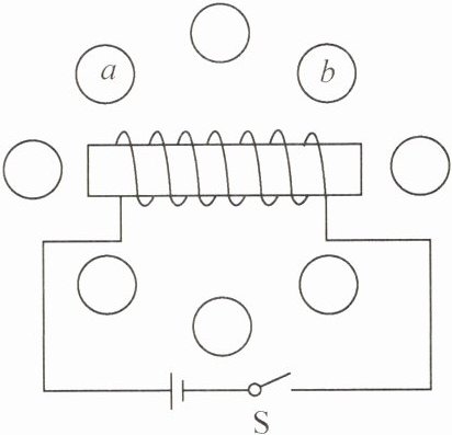 B.闭合开关,放置在 a、b 处的小磁针静止时,它们的 N 极指向相同