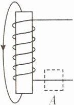 图略(标出通电螺线管的$N$极在螺线管的左端;标出$A$处导线中的电流方向垂直纸面向里)。
