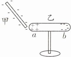 (1)发生上述现象的原因:金属导体中存在大量可移动的自由电子,电子带______(选填“正”或“负”)电;自由电子受到物体甲所带电荷的______(选填“吸引”或“排斥”)作用移动到导体乙的一端。