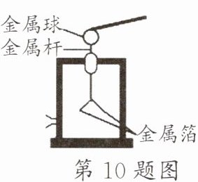 10. (鄂州中考)如图所示的是实验室的验电器,它的工作原理是同种电荷______。验电器的金属箔所带的电荷量越多,金属箔的张角______。验电器______(选填“能”或“不能”)直接检验物体带哪种电荷。