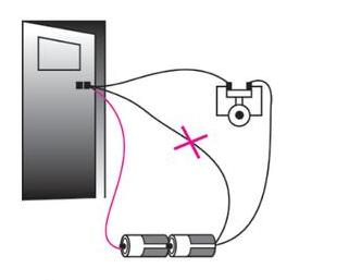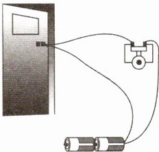 5. (新编)如图所示是小明设计的门铃电路。电路设计正确吗? 答:____。如果正确就不作改动;如果错误请改正:在错误的导线上打“×”,并画出正确的导线。