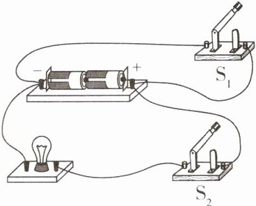 变式训练4 在如图所示的电路中,当开关$S_{1}$、$S_{2}$都断开时,电路处于____状态;当单独闭合开关$S_{1}$时,电路处于____状态;当单独闭合开关$S_{2}$时,电路处于____状态。