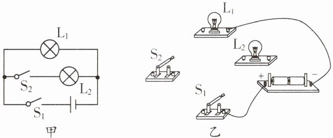 将$L_2$左端接线柱与$S_2$左端接线柱用导线连接,$S_2$右端接线柱与电源负极用导线连接。