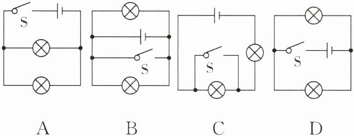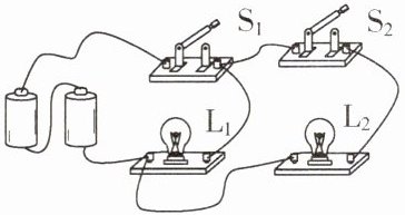 (元件符号:电源“┬─”,开关“S”,灯泡“○─□─○”)
