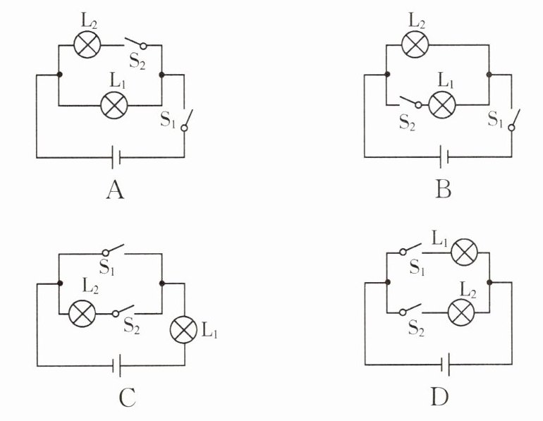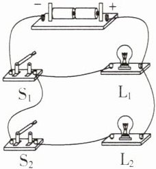 支路2:经过灯泡L₂、开关S₂后回到电源负极。