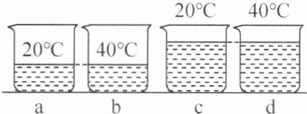 温度方面:a杯20℃,b杯40℃,c杯20℃,d杯40℃。