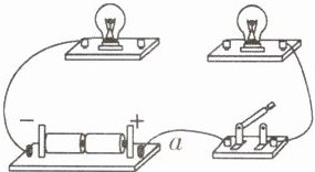连接从电源正极出发,依次连接开关、两个灯泡,最后回到电源负极(图略,按上述连接方式连接即可),导线a中电流方向从右向左 。