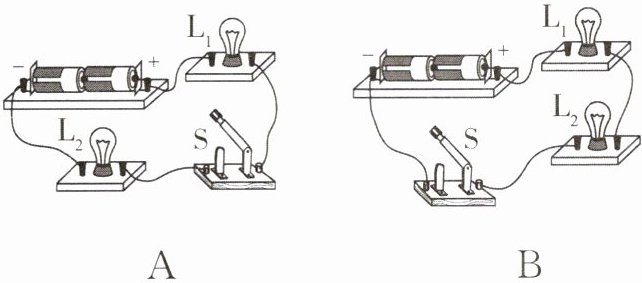 2. (新编)(多选)在如图所示的电路中,闭合开关S,小灯泡$L_{1}$、$L_{2}$串联的是 ( )