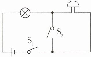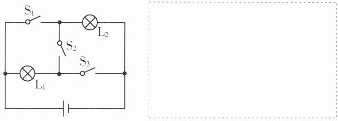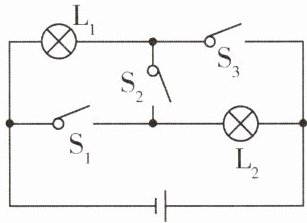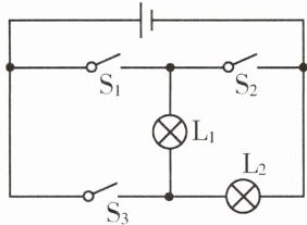 (此处应画出$L_{1}$与$L_{2}$并联,$S_{1}$在$L_{2}$支路,$S_{3}$在干路的电路图)