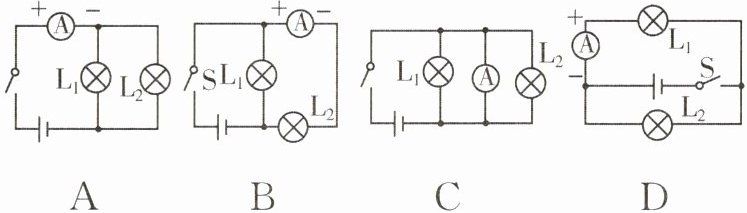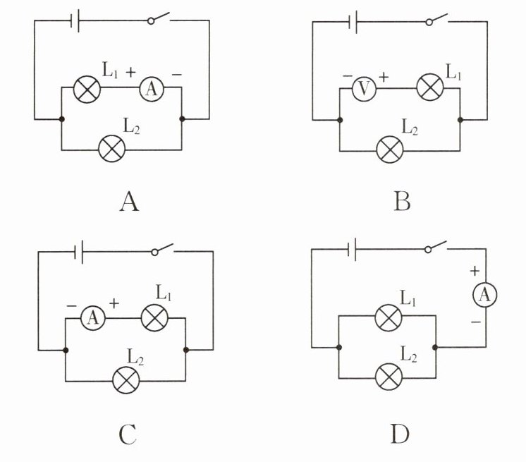 解:A图中,电流表与L₁串联,电流从电流表正接线柱流入、负接线柱流出,能直接测出通过L₁的电流;