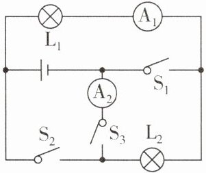 D.闭合开关$S_{1}$、$S_{3}$时,$L_{1}$、$L_{2}$都发光,$A_{1}$、$A_{2}$均有示数
