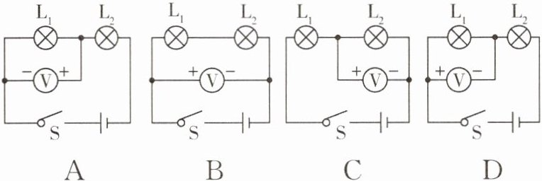 【例3】如图所示,能正确地测出小灯泡$L_1$两端电压的电路是( )